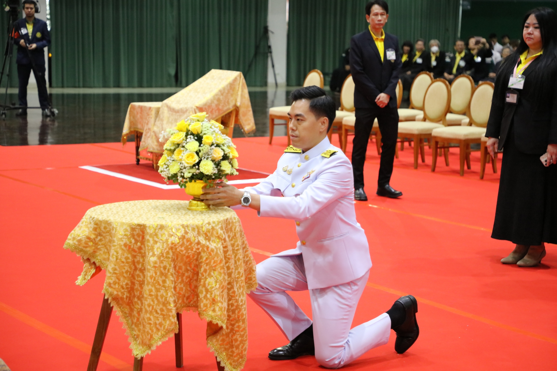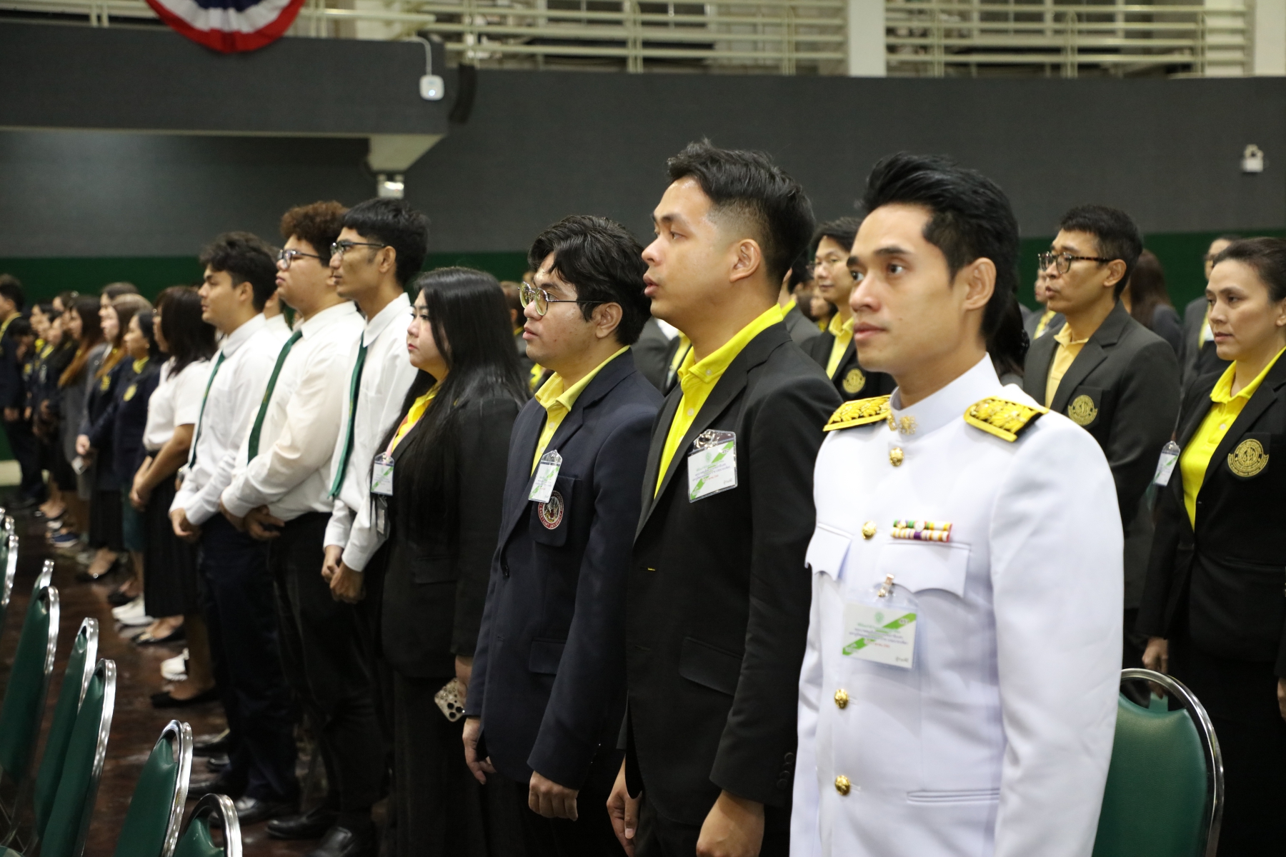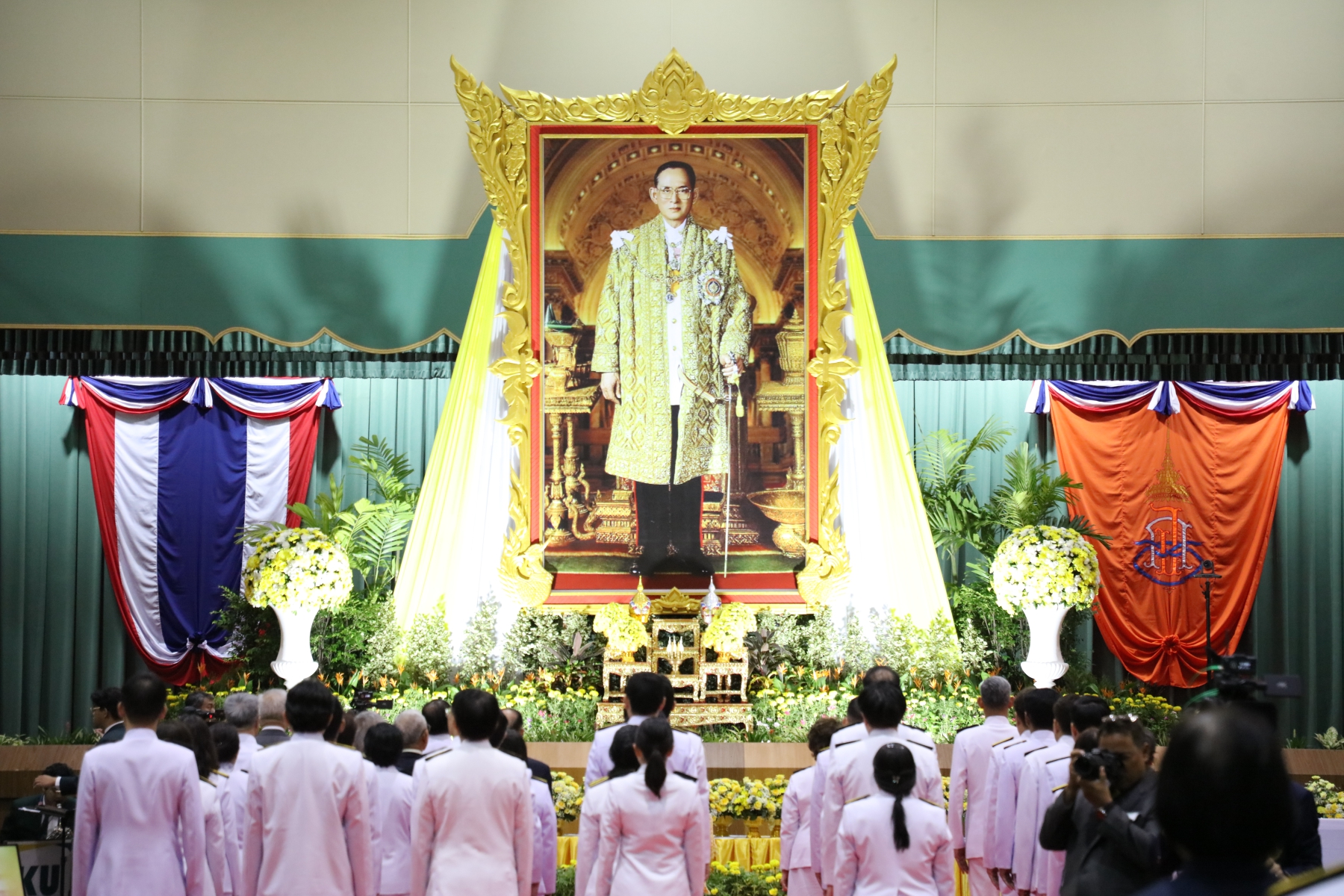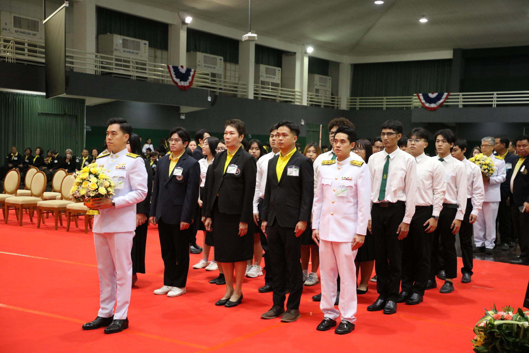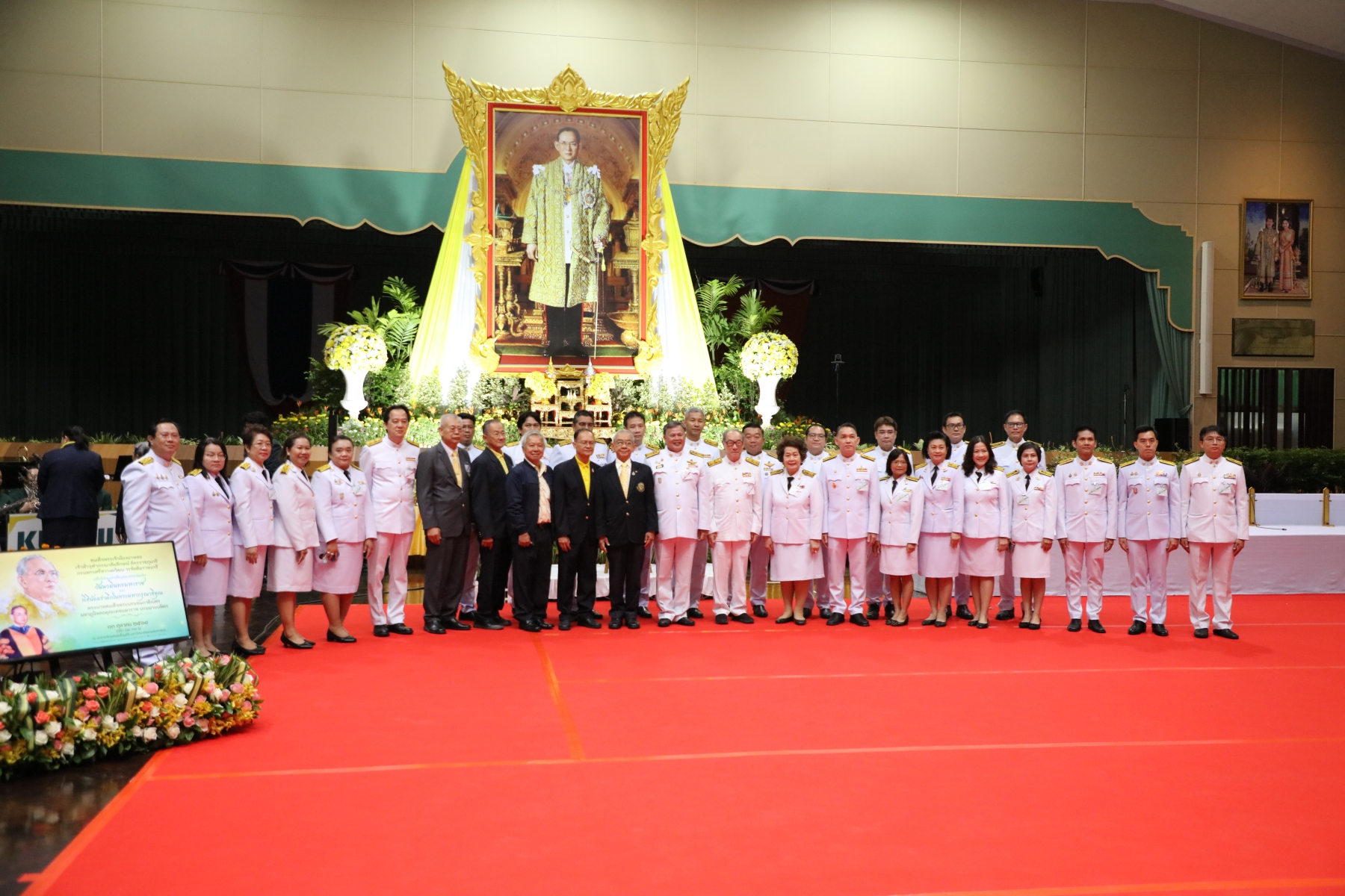 ผู้บริหาร คณาจารย์ และบุคลากร ร่วมงานวันนวมินทรมหาราช และพิธีน้อมรำลึกในพระมหากรุณาธิคุณ พระบาทสมเด็จพระบรมชนกาธิเบศร มหาภูมิพลอดุลยเดชมหาราชบรมนาถบพิตร จัดโดยมหาวิทยาลัยเกษตรศาสตร์ (มก.) ณ อาคารจักรพันธ์เพ็ญศิริ มก
